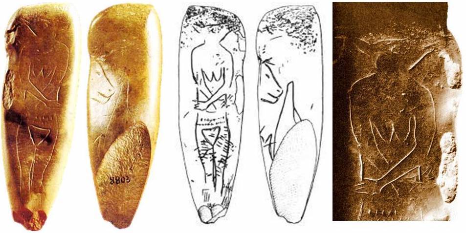 La particolare rappresentazione dell’unione dell’elemento femminile con quello naturale e animalesco, è probabilmente legata allo sciamanesimo, come suggerito dall’utilizzo rituale, forse apotropaico, dell’oggetto come percussore, ma si potrebbe anche pensare essere la prima immagine nota di quella che sarà in epoca classica e soprattutto medievale, ma non solo, l’idea del licantropo (dal greco λύκος e ἄνθρωπος), l’uomo lupo che rappresenta un rapporto più o meno conflittuale dell’essere umano con questo astuto e feroce predatore.
